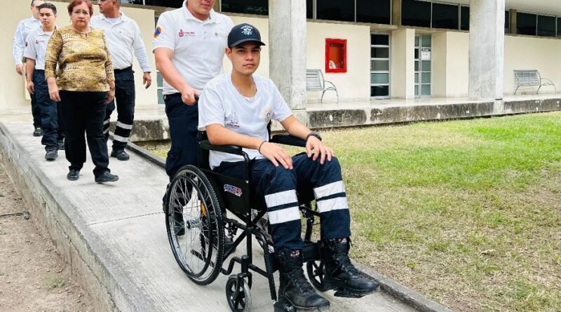 Durante esta actividad preventiva, participantes del curso “Comunicación de la Gestión Inclusiva del Riesgo de Desastres en Grupos Vulnerables”, impartido por la Coordinación General de Protección Civil de Puebla, evacuaron su edificio en sillas de ruedas, para generar conciencia de los riesgos a los que las personas con alguna discapacidad pueden ser vulnerables y la importancia de que sus semejantes contribuyan a su evacuación en las mejores condiciones de seguridad y tranquilidad.