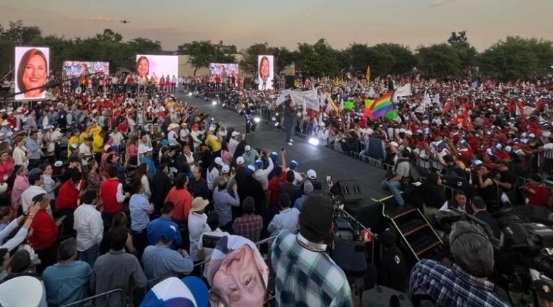 En el Parque Bicentenario, de la Ciudad de México, Xóchitl Gálvez, candidata presidencial de PAN, PRI y PRD, fue recibida por miles de militantes de esos institutos políticos , con banderas amarillas, azules y rojas.