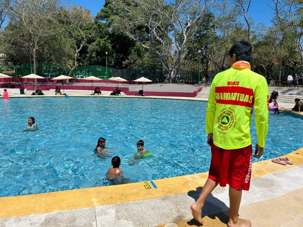 De manera preventiva, la Unidad Estatal de Protección Civil ha desplegado seis guardavidas, dos paramédicos y una ambulancia, para apoyar en la atención de quienes acude a disfrutar de este balneario en la zona centro de la capital colimense, y atender alguna emergencia que pudiera surgir, así como cuatro integrantes del Escuadrón Juvenil que emiten recomendaciones a las y los visitantes, para prevenir incidentes.