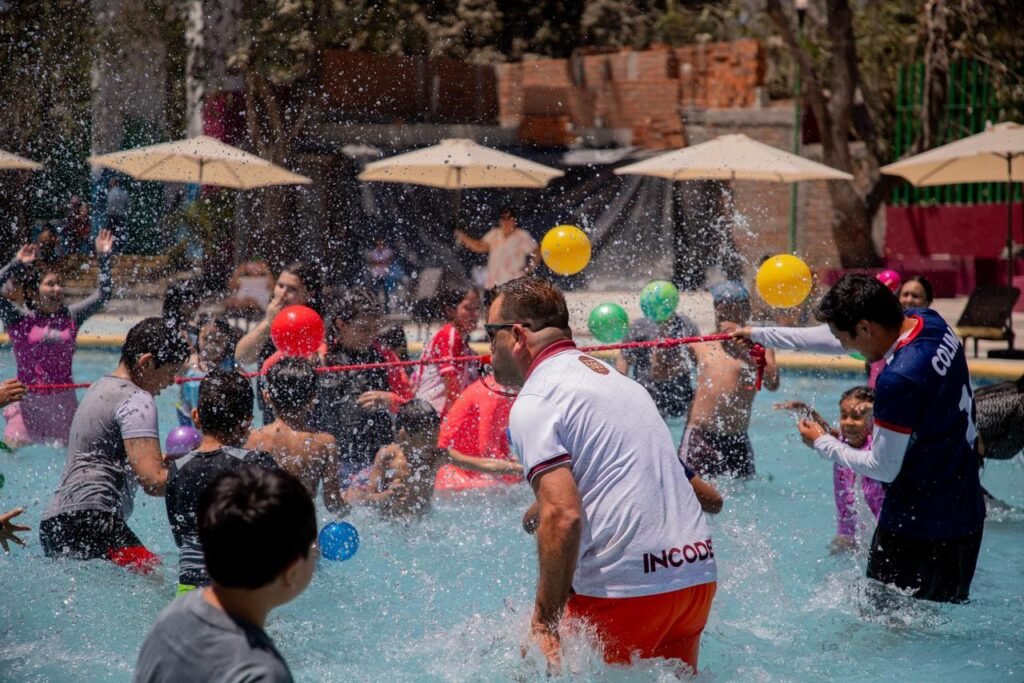 De forma complementaria, se tienen grupos de animación para organizar juegos acuáticos para las y los menores de edad en la ‘Alberca Tortuga’. Además, agentes de Seguridad Pública supervisan que no se introduzcan objetos prohibidos y se mantenga la tranquilidad en este espacio recreativo, mientras personal de Movilidad apoya en la agilización del tránsito vehicular.