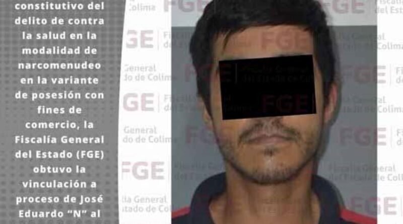 Por el hecho constitutivo del delito de contra la salud en la modalidad de narcomenudeo en la variante de posesión con fines de comercio, la Fiscalía General del Estado (FGE) obtuvo la vinculación a proceso de José Eduardo “N” al ser detenido por elementos de la Policía Estatal en posesión de metanfetamina.