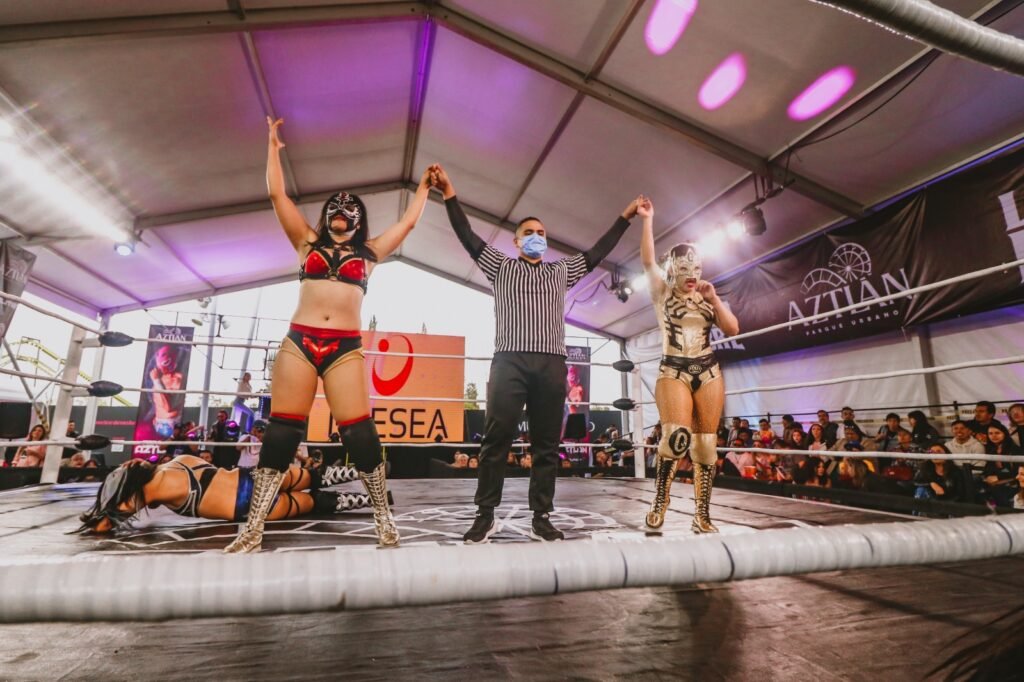 Además de la acción en el cuadrilátero, el ambiente festivo fue complementado con música en vivo de reconocidos DJs como Aranza Goros y Sebat, creando una experiencia vibrante e inolvidable para los asistentes.