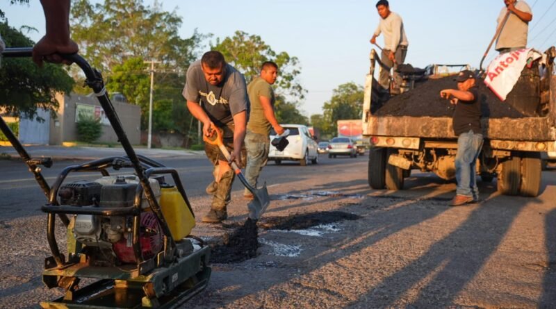 En el Boulevard Rodolfo Chávez Carrillo, la alcaldesa, acompañada por trabajadores de la Dirección de Conservación y Mantenimiento, señaló que las lluvias del actual temporal han dejado muchas complicaciones en las vialidades de la Ciudad.