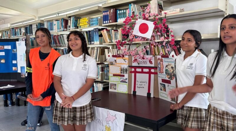 Con el objetivo de fortalecer el dominio del idioma inglés y promover el aprendizaje intercultural, en días pasados estudiantes del Bachillerato 7 realizaron una feria de países como parte de los trabajos de la materia de inglés, que imparte la docente Rosa Jaramillo Sotomayor.