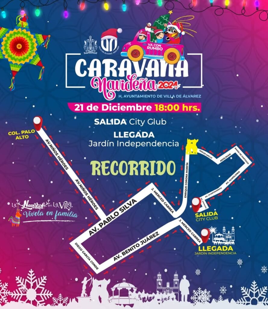El Ayuntamiento de Villa de Álvarez que encabeza la Presidenta Tey Gutiérrez invitó a disfrutar de la Caravana Navideña 2024, que recorrerá las principales avenidas de la cabecera municipal, llevando alegría y diversión a todas las familias.