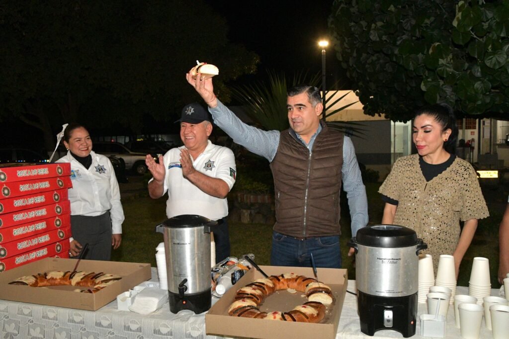 Por otra parte, el Presidente Municipal de Colima, acudió a la Dirección de Seguridad Pública, Tránsito y Vialidad, donde se reunió con los elementos de esa corporación, con quienes partió la rosca de reyes, felicitándolos por la función que desarrollan para salvaguardar la seguridad de las y los colimenses.