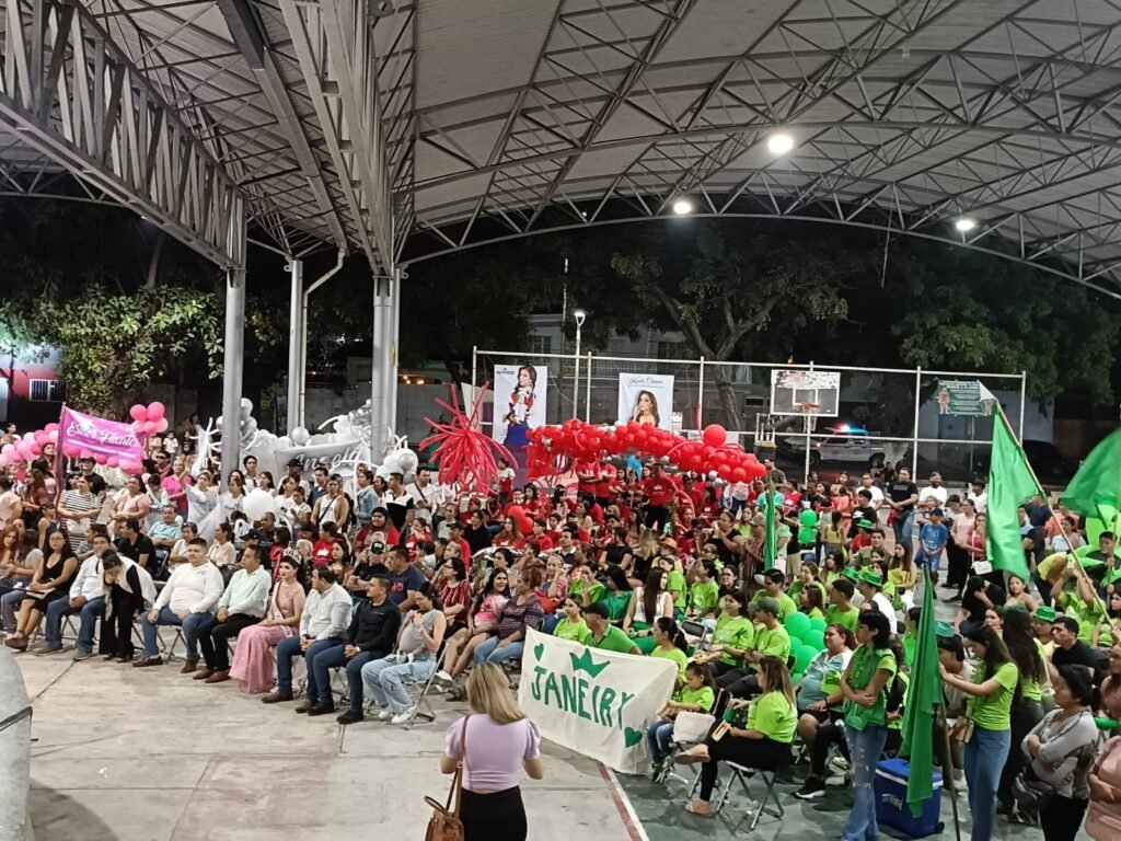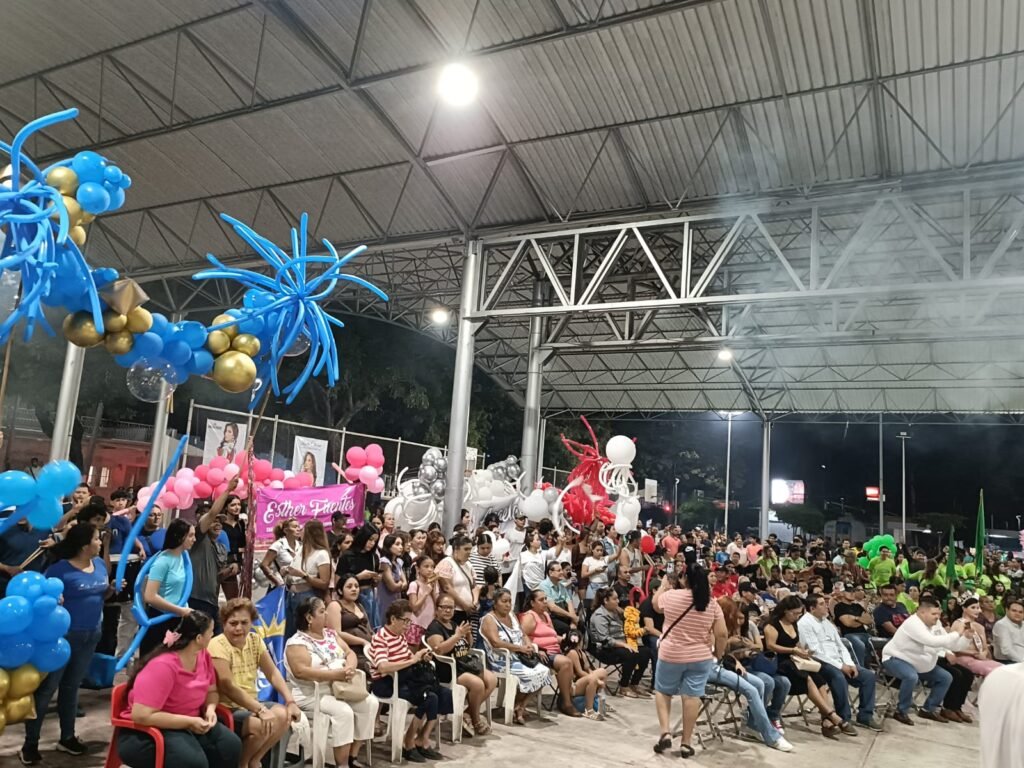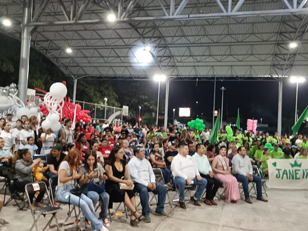 Con gran participación, asistencia y estudiamos, Ángela Karina Magdalena Vergara, Antonia Guadalupe Velazco García, Karla Daniela Chávez Preciado, Diana Marisol Palacio López, María Esther Fuentes Rodríguez y Janeirry Lee Mendoza Méndez, acompañadas al frente por las Reinas actuales Kassandra Ramírez y Mariana Centeno.