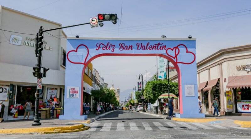 El arco fue pintado en color azul y se modificó la iluminación, además de lucir adornos alusivos al día del amor y la amistad y colocarle la frase “Feliz San Valentín”.