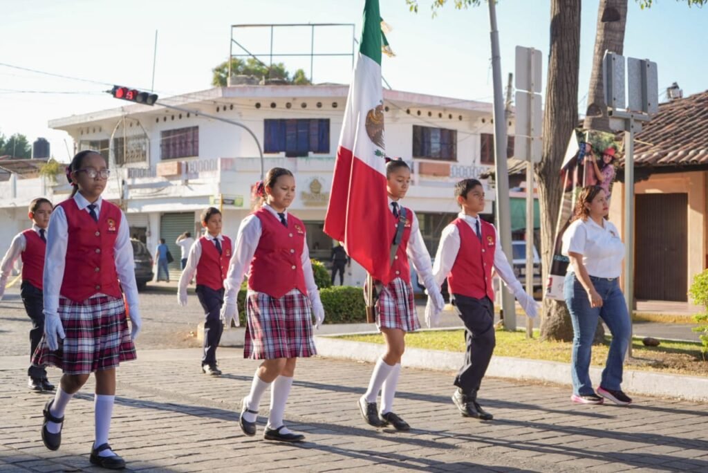 Conmemora VdeA a la Enseña Patria con marcha de banderas mexicanas