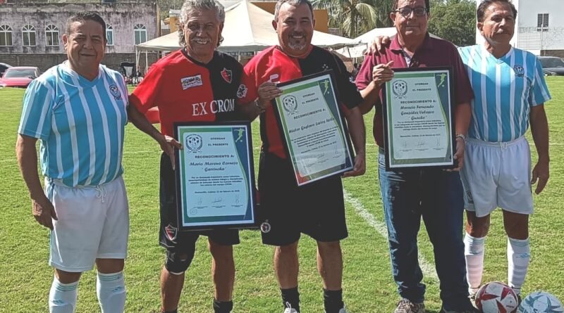 Enseguida, se dio paso a un encuentro de futbol amistoso entre el equipo anfitrión integrado por jugadores que portaron el uniforme rojinegro de la CROM y el representativo del Grupo de Amigos Leyendas del Futbol Colimense.
