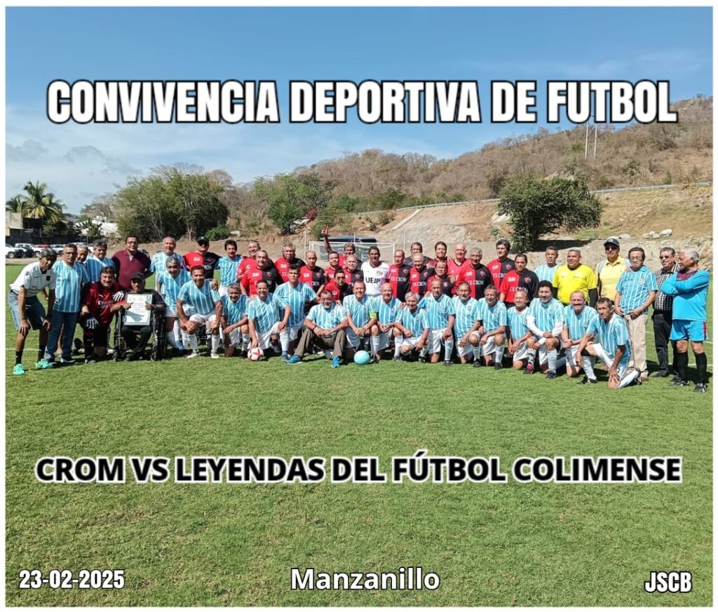 Grata convivencia tuvieron directivos y jugadores del Grupo de Amigos Leyendas del Futbol Colimense, este domingo 23 de febrero en Manzanillo, invitados por la Unión de Estibadores y Jornaleros del Pacífico, a la unidad deportiva que la CROM, central obrera a la que pertenecen, les construye en Miramar.