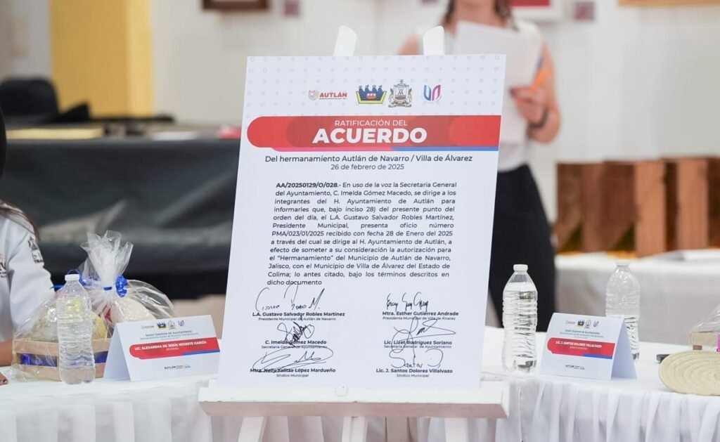 Autlán de Navarro, Jal.- Villa de Álvarez, Colima, y de Autlán de Navarro, Jalisco, confirmaron este miércoles el Acuerdo de Hermanamiento que el pasado 11 de febrero firmaron en el municipio colimense las autoridades de ambas demarcaciones, encabezadas por sus presidentes municipales, Tey Gutiérrez Andrade y Gustavo Robles Martínez.