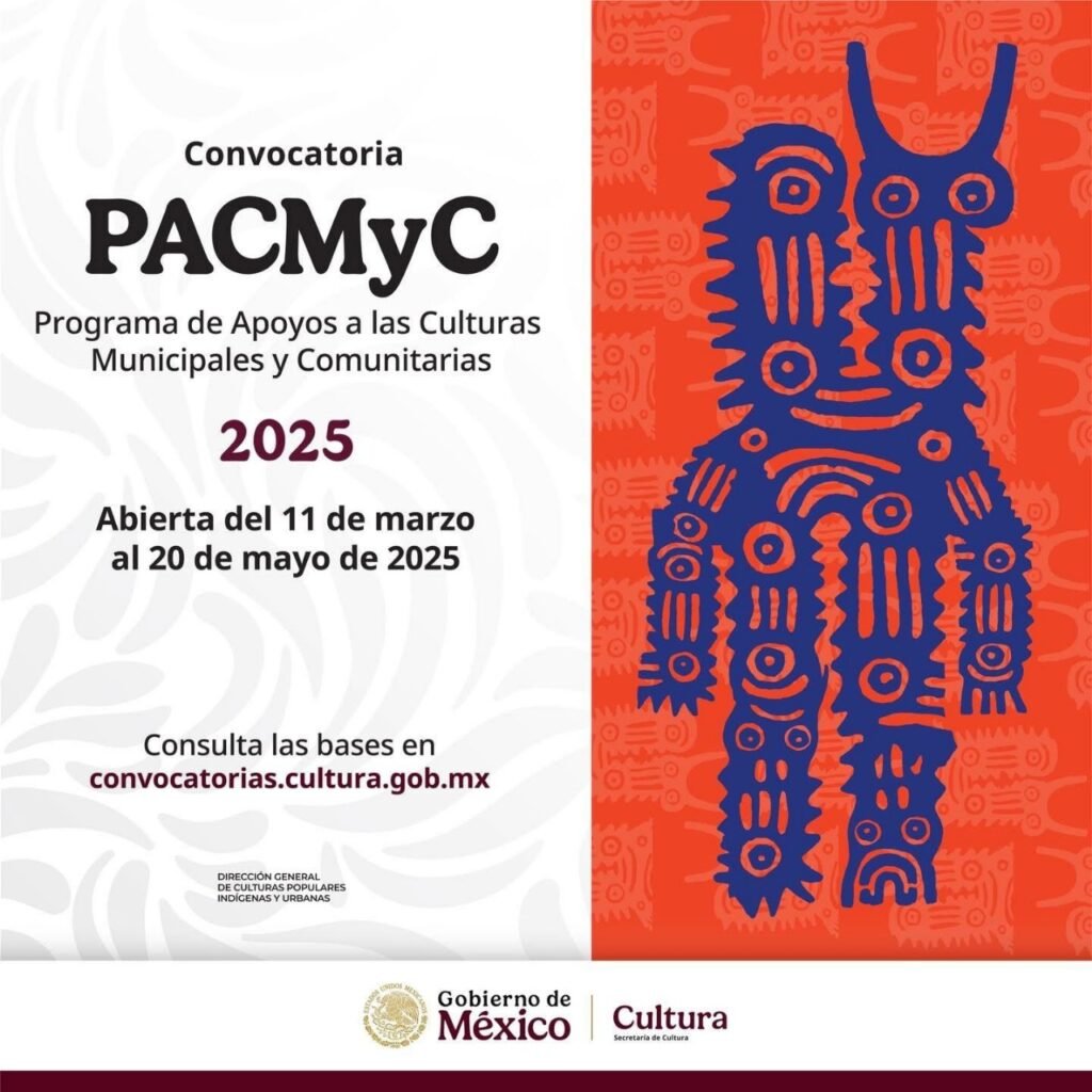 La Secretaría de Cultura del Gobierno de México, a través de la Dirección General de Culturas Populares, Indígenas y Urbanas, publicó la convocatoria para el Programa de Apoyos a las Culturas Municipales y Comunitarias (PACMyC) 2025 y que permanecerá abierta hasta el 20 de mayo del presente año, en la que podrán participar personas portadoras de culturas populares.