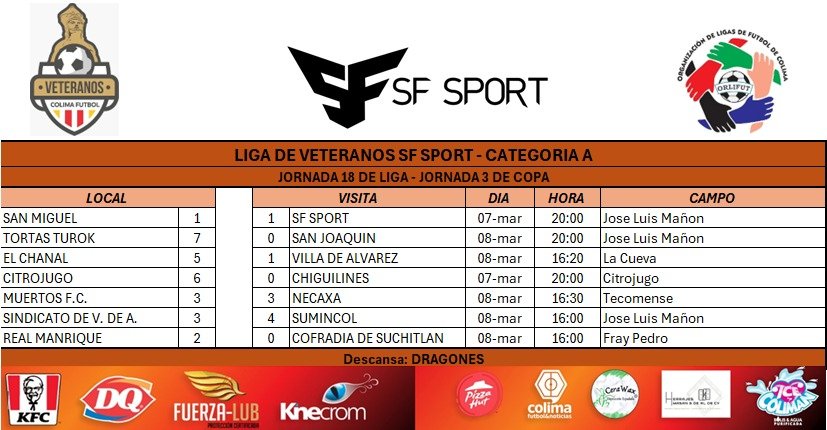 En cuanto al resto de los marcadores, Tortas Tukok blanqueó 7-0 al San Joaquín; Chanal 5-1 a Villa de Álvarez; Citrojugo 6-0 a Chigüilines; Muertos F.C. 3-3 con Necaxa; Sindicato de Villa de Álvarez 3-4 Sumincol y Real Manrique 2-0 a Cofradía de Suchitlán. Descansó Dragones.