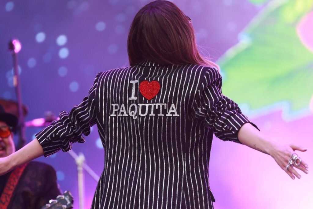 La cantante española salió al escenario con un traje a rayas y que en la espalda decía ” I Love Paquita”.