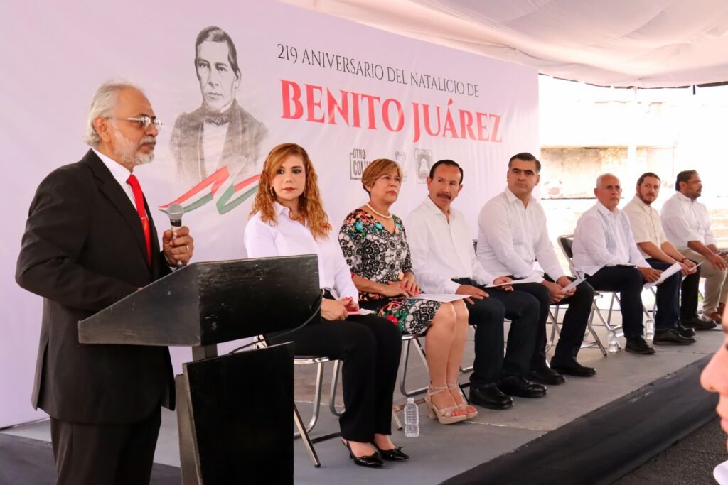 El presidente municipal de Colima, Riult Rivera Gutiérrez, encabezó este día la ceremonia del 219 aniversario del natalicia del Benemérito de las Américas, Benito Juárez García, organizado por el Círculo Cultural Colimense.