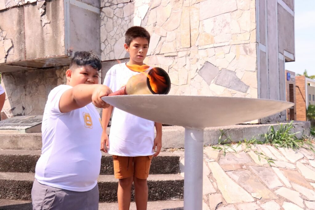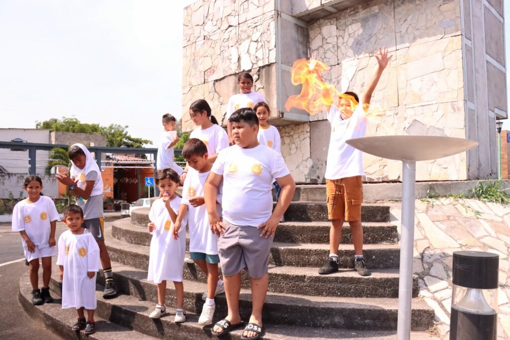 Como parte de esta ceremonia se recibió la antorcha y se efectuó el encendido del pebetero a cargo de los integrantes del Círculo Cultural Colimense, quienes involucraron a los vecinos, ya que un grupo de menores fueron los encargados de trasladar la antorcha.
