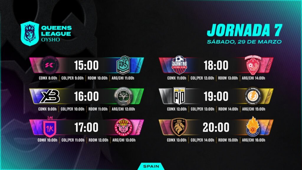 *Conoce a qué hora jugarán los 12 clubes de la Queens League Oysho Spain sus duelos de la jornada 7 de este sábado, 29 de marzo