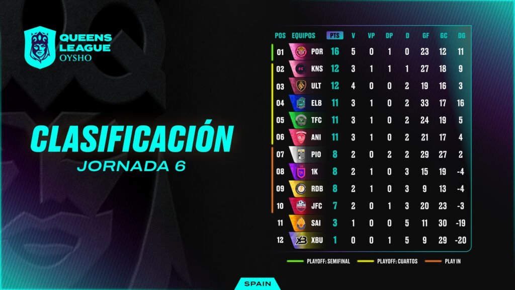 La Queens League Oysho Spain entra en su fase decisiva del Split 4. La clasificación sigue ajustada y cada punto es crucial para alcanzar los puestos de Playoff y Play In.