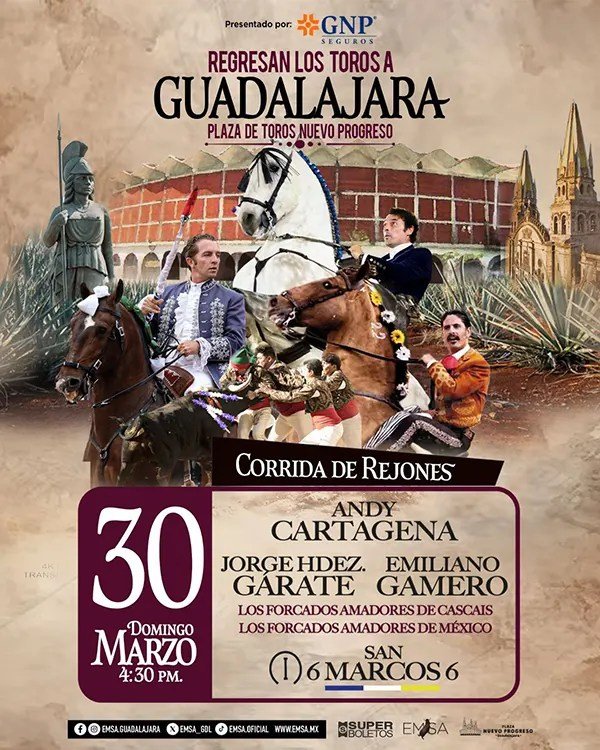 El rejoneador español Andy Cartagena llega a esta cita con una racha triunfal en su temporada mexicana, consolidando su prestigio con cada presentación. Su cuadra ha sido clave en su éxito y en Guadalajara buscará cerrar con broche de oro una serie de actuaciones memorables.