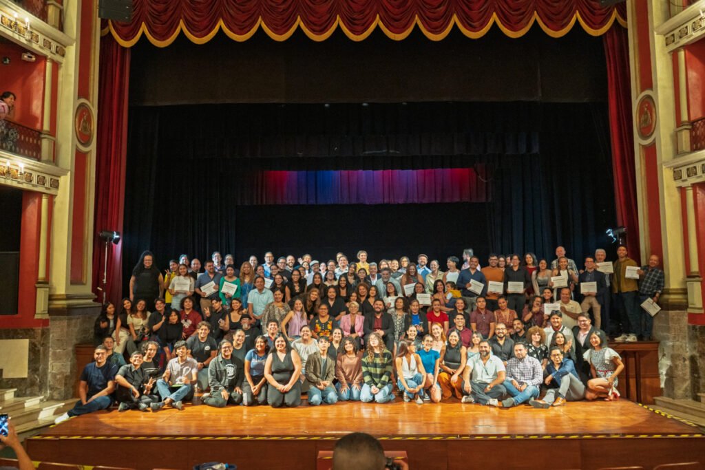 Como parte de la ceremonia, se realizó la lectura del Manifiesto del Día Mundial del Teatro 2025, a cargo de la actriz Cynthia Zapata. Por su parte, Sam Ruelas compartió el texto del “Manifiesto desde la no capital”.