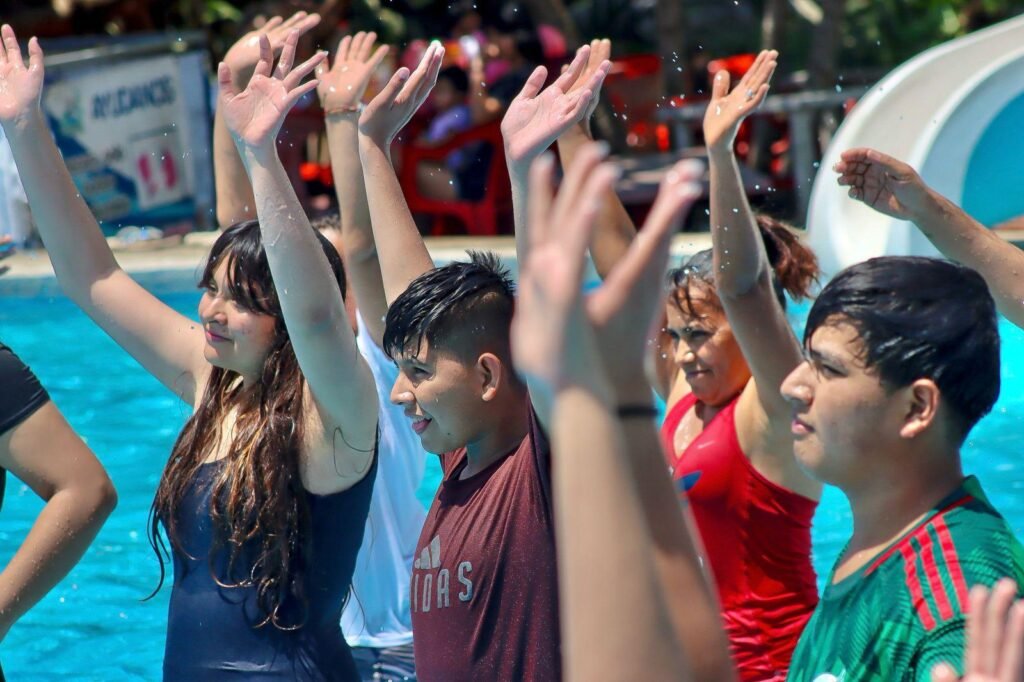 Desde las 11 de la mañana, niñas, niños, jóvenes y adultos participaron en una divertida activación física musical acuática, seguida por emocionantes carreras de nado y creativas dinámicas en toboganes, incluyendo un entretenido concurso de lagartijas que sacó risas y aplausos.