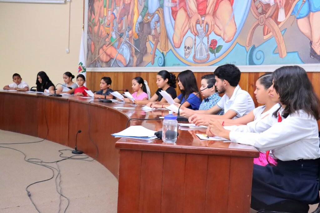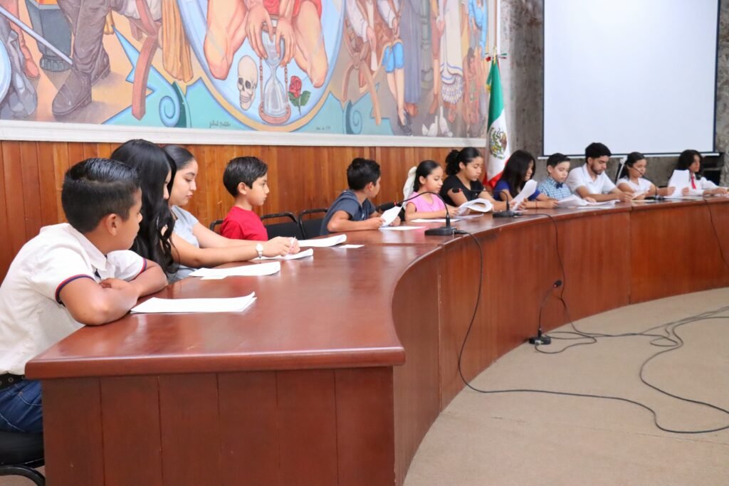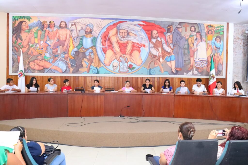 Realizan menores ensayo sobre la sesión de cabildo infantil en el Ayuntamiento de Colima