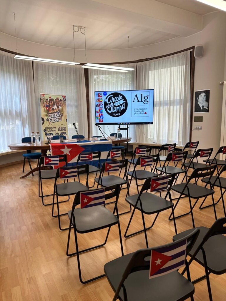 El día comenzó con la rueda de prensa presentando a los artistas, que tenían como ubicación el Círculo de Prensa de Milán y fue moderado por la periodista Karin Jara. La conferencia fue un evento en el que el moderador pudo mezclar la solemnidad de la música clásica el pianista cubano Yousi, la belleza expresiva del arte pintado de Borsi Veliz, quien donó una de sus obras a Manolito y su Trabuco junto a Caroband, los grandes protagonistas del CubanFest.