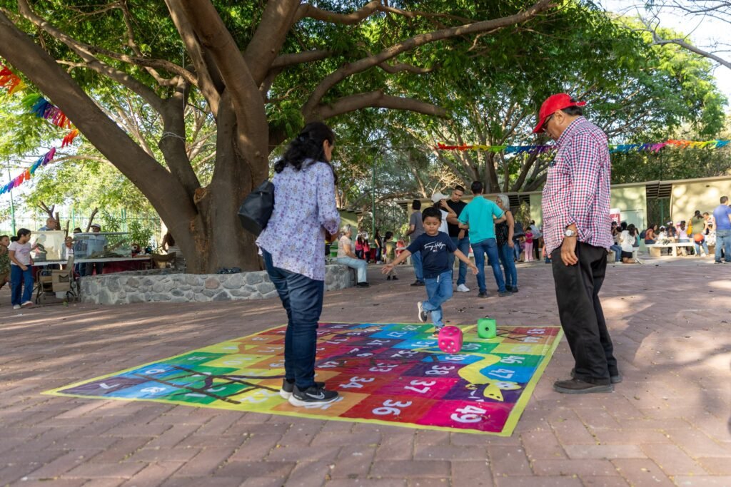 Durante el evento, que tuvo una duración de casi tres horas, se realizaron actividades como búsqueda del tesoro, juegos con resorte, trompo, canicas, serpientes y escaleras, carreras de costales, talleres de arte y manualidades, así como una función de cine al aire libre.