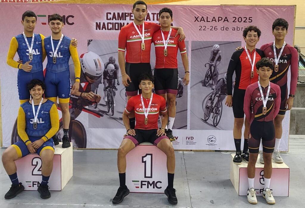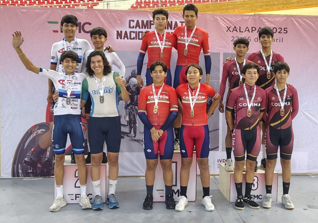 En la persecución varonil-C, lograron bronce el equipo integrado por David Enrique Anguiano Santana, Martín Centeno Villarreal, Ivory Guzmán Parra y Omar Contreras Vicencio. El tercer bronce para Colima llegó en la velocidad por equipos, repitiendo color Diego Anguiano, Giovanni Santiago y Carlos Rivera Ceballos, superados por Sinaloa y Jalisco, pero dejando atrás a BCS y la alianza de Nuevo León y Chihuahua.
