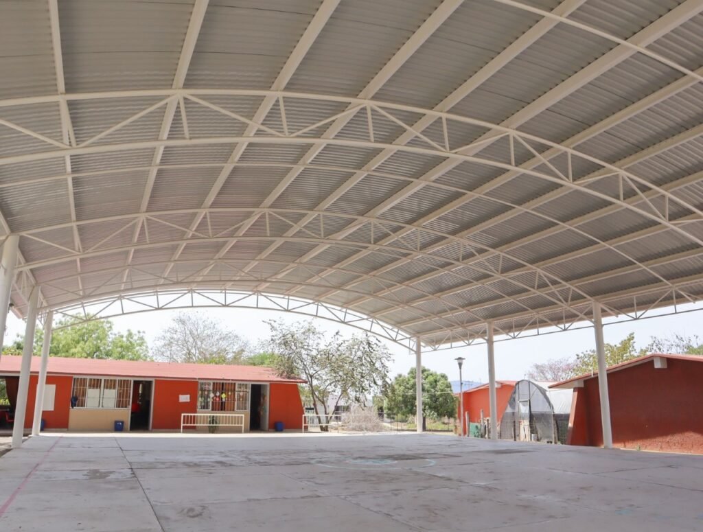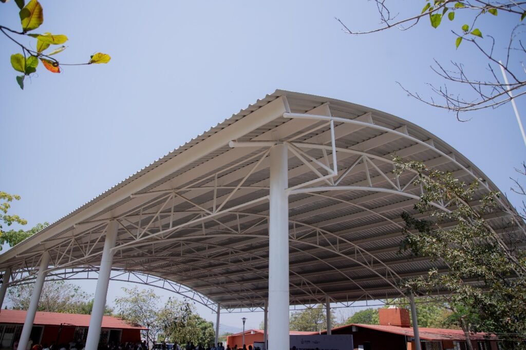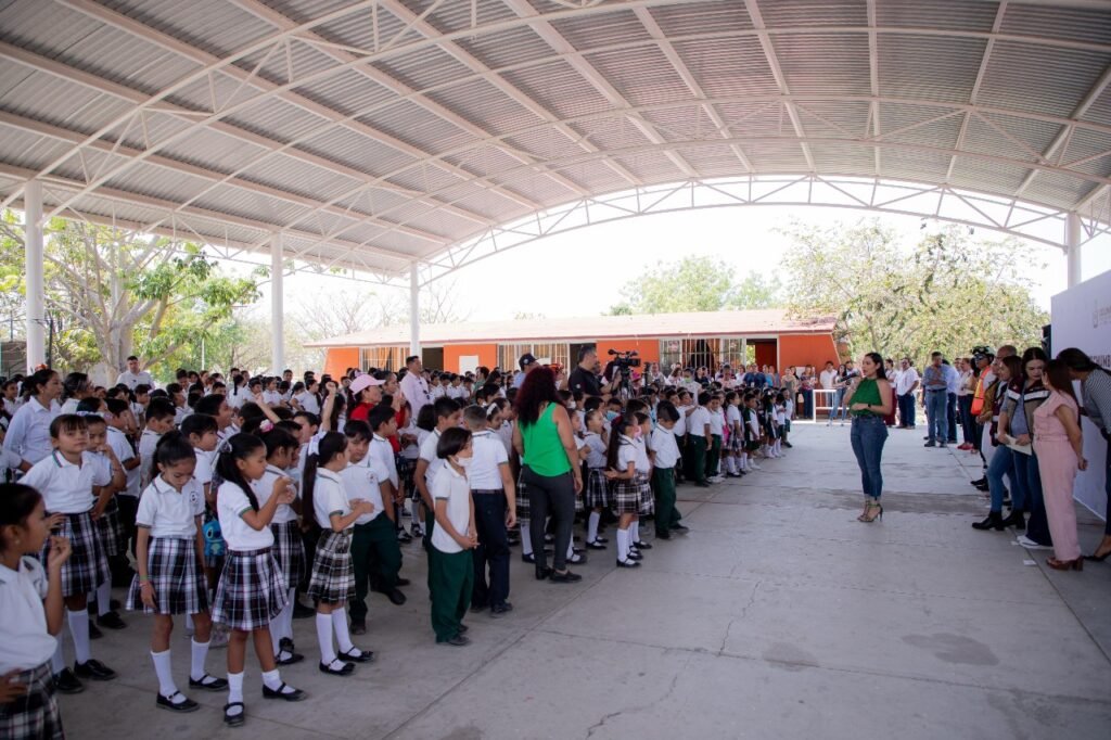 La gobernadora de Colima, Indira Vizcaíno Silva, acompañada por la titular de la Secretaría de Infraestructura, Desarrollo Urbano y Movilidad (Seidum), Marisol Neri León, entregó este martes la techumbre en la plaza cívica de la escuela primaria ‘Griselda Álvarez Ponce de León’, en el municipio de Villa de Álvarez.