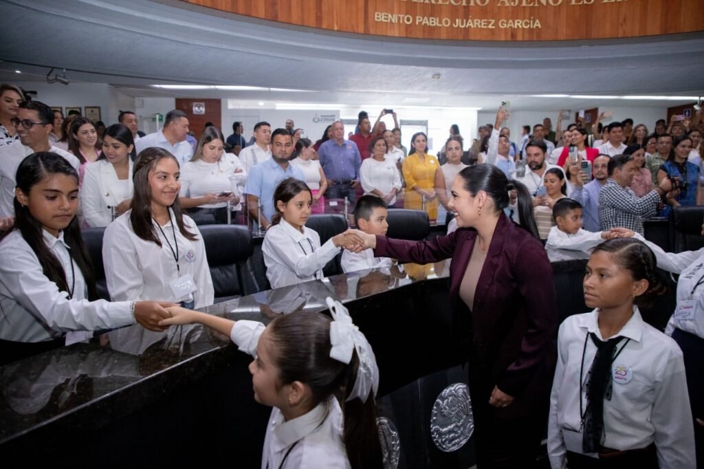 “Queremos que ustedes -niñas, niños y adolescentes-, tengan las mejores condiciones para forjarse el futuro que sueñan, para que ese papel de gobernantes, legisladores y jueces por un día, lo puedan desempeñar si así se lo proponen cuando crezcan”, expresó la mandataria colimense.