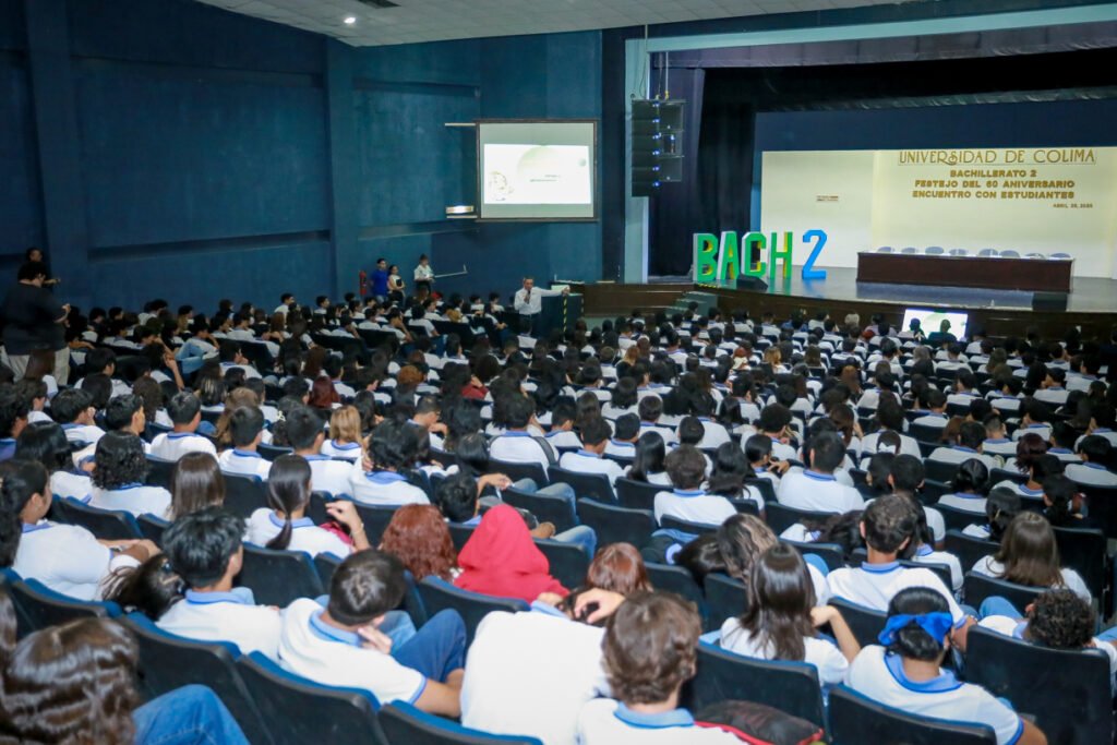 Como parte de las actividades para celebrar el 60 aniversario del Bachillerato 2 de la Universidad de Colima (UdeC), el rector Christian Jorge Torres Ortiz Zermeño impartió la conferencia “Consejos personales para el buen desarrollo como estudiante de la Universidad de Colima”, ante cientos de estudiantes reunidos esta tarde en el Paraninfo Universitario.