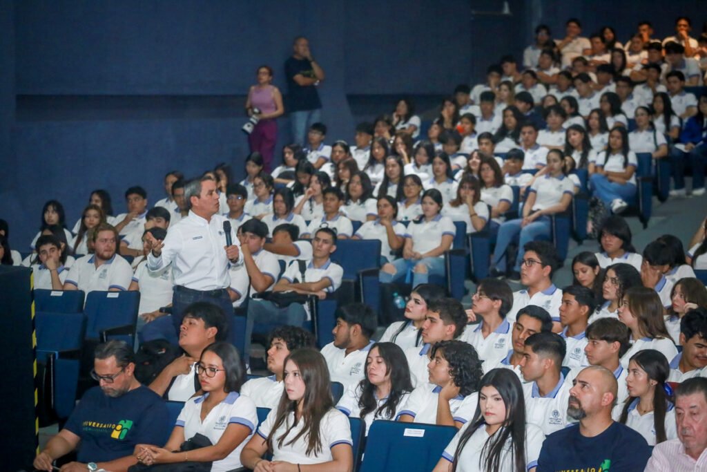 Con un tono cercano y ejemplos tomados de la vida universitaria, el rector compartió seis principios clave para un desarrollo estudiantil pleno. El primero fue la congruencia, destacando aquí que la credibilidad y el respeto se ganan cuando nuestras acciones reflejan nuestras palabras, y éstas a su vez nuestro pensamiento, lo que fortalece el compromiso y la confianza en los entornos donde nos desenvolvemos.