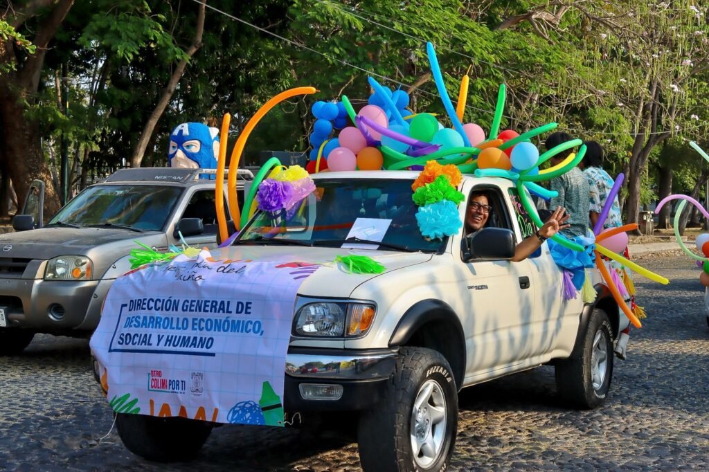 En el marco del Día Social de la Niña y el Niño, el DIF Municipal Colima, que preside Quetzalin Rivera Gutiérrez, llenó de alegría las calles de la capital con una colorida caravana infantil que arrancó en el Parque Hidalgo y culminó con un animado festival en la colonia Los Pinos, en la zona oriente de la ciudad.