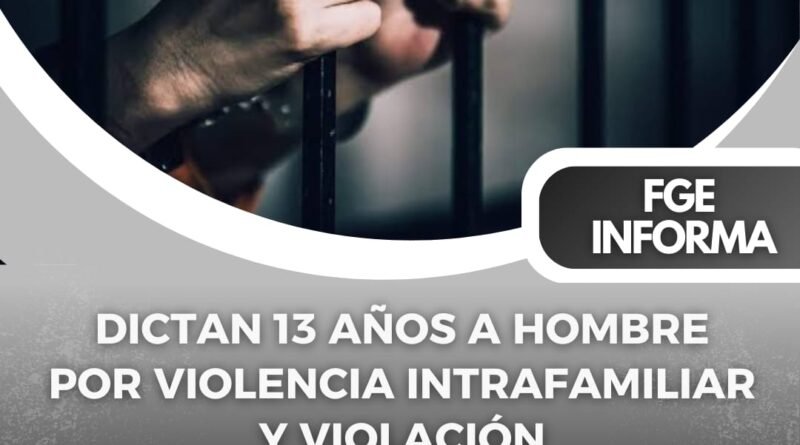 La Fiscalía General del Estado (FGE) informa que Gregorio Israel “N” recibió la sentencia condenatoria de 13 años de prisión luego de que fue probada su responsabilidad penal en los delitos de violencia intrafamiliar y violación en agravio de su ex pareja sentimental.