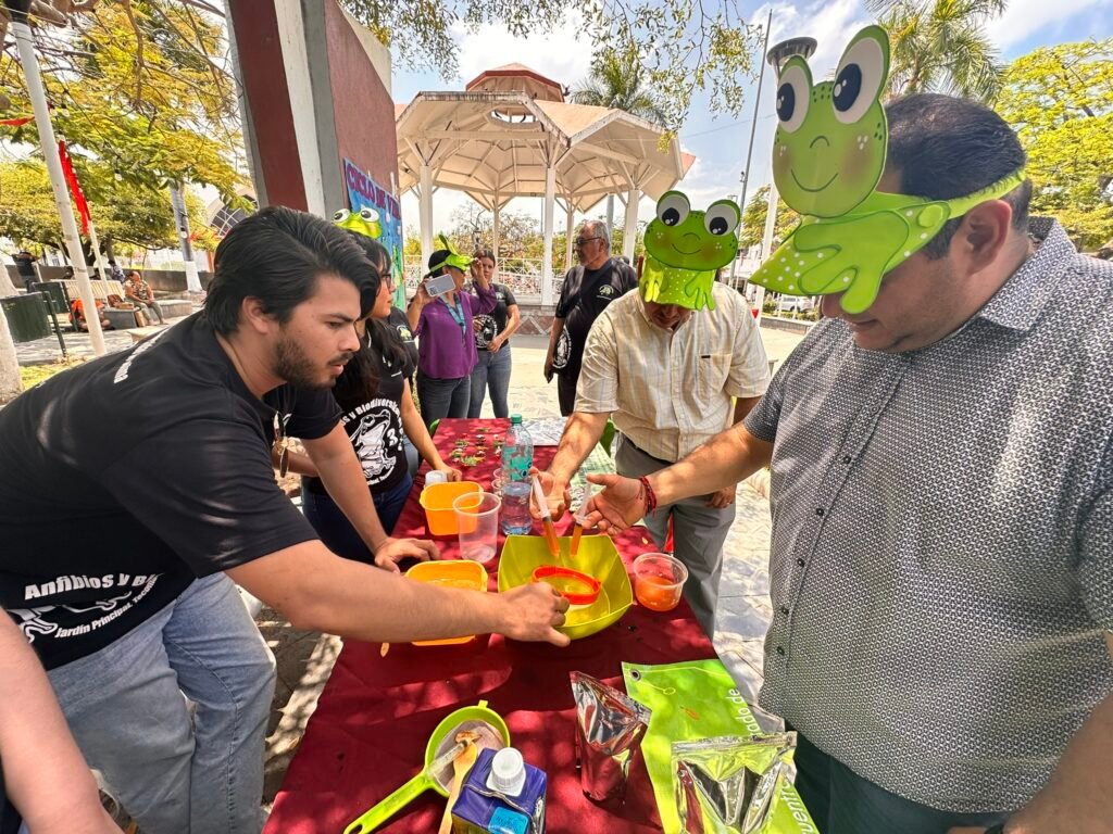 Con el propósito de fomentar la conciencia ambiental y destacar la importancia ecológica de los anfibios, así como promover la conservación de la biodiversidad local, la Federación de Egresados de la Universidad de Colima (FEUC), a través de su Asociación de Egresados de Biología, en conjunto con estudiantes del programa educativo de Biología, realizaron este fin de semana la jornada “Anfibios y Biodiversidad de Colima”, en el Jardín Principal de Tecomán.