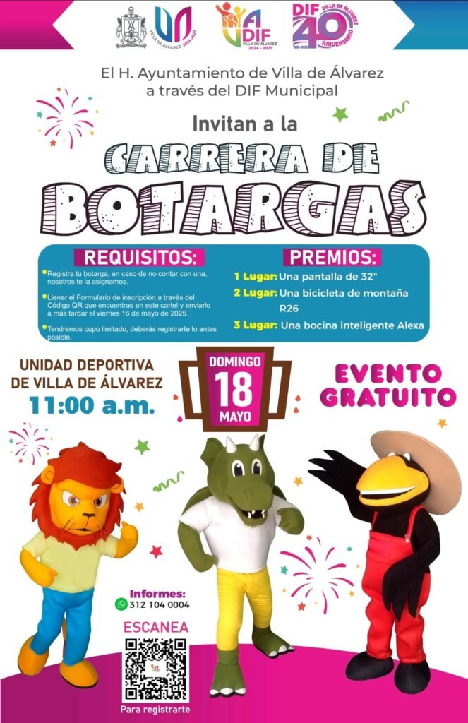 En el marco del 40 Aniversario del DIF Municipal de Villa de Álvarez y como parte de las actividades de la celebración, ese organismo convoca a la población en general participar en la Carrera de Botargas.