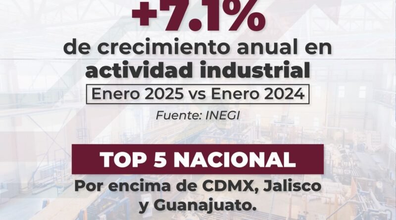 El estado de Colima se colocó entre las entidades con mayor crecimiento en su actividad industrial a nivel nacional, al registrar un aumento anual del 7.1% durante enero de 2025, en comparación con el mismo mes del año anterior, de acuerdo con datos del Instituto Nacional de Estadística y Geografía (Inegi).