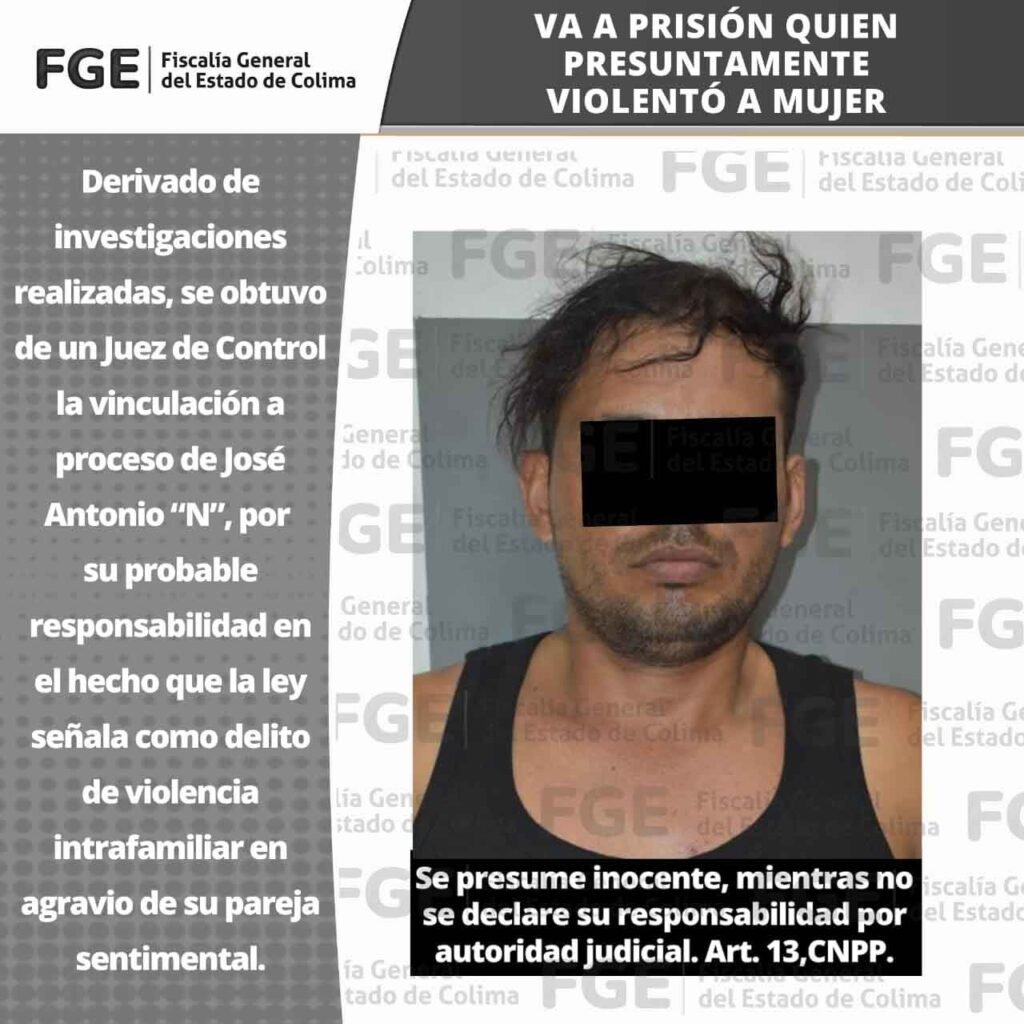 Derivado de investigaciones realizadas, se obtuvo de un Juez de Control la vinculación a proceso de José Antonio “N”, por su probable responsabilidad en el hecho que la ley señala como delito de violencia intrafamiliar en agravio de su pareja sentimental.