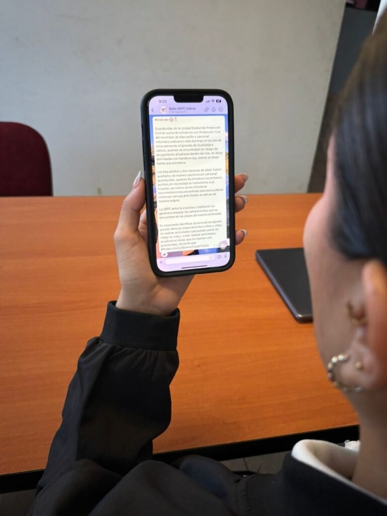 La Unidad Estatal de Protección Civil (UEPC) del Gobierno del Estado de Colima compartirá a través de su canal de difusión ‘Balto UEPC Colima’ en WhatsApp, recomendaciones a quienes visitan las diferentes playas de la entidad, por lo que reitera su invitación a unirse de manera gratuita al canal, donde podrán informarse de las condiciones meteorológicas en la franja costera de Armería, Tecomán y Manzanillo, además de recibir noticias importantes en tiempo real.