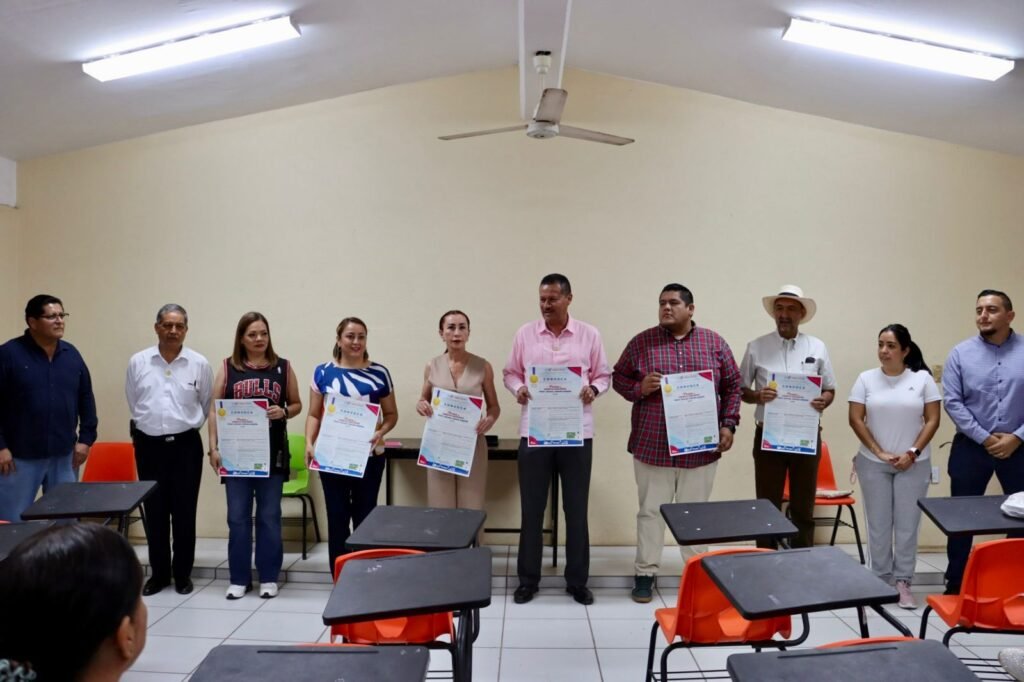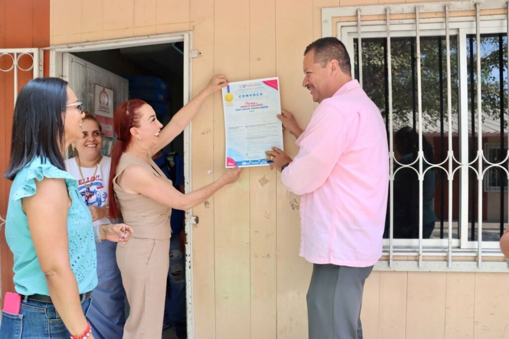 En la primaria Nissan de la colonia Tabachines y en la secundaria Profesor Miguel Virgen Morfín, la Presidenta Tey Gutiérrez Andrade promovió la convocatoria a la Presea al Mérito Docente 2025, con la que el Ayuntamiento de Villa de Álvarez reconocerá el trabajo extraescolar de los maestros y maestras del municipio.