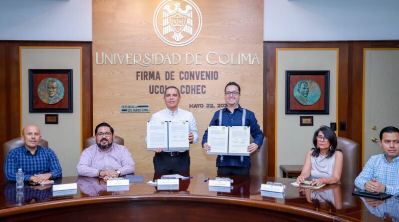 Este jueves, en la sala de juntas de rectoría, la Universidad de Colima y la Comisión de Derechos Humanos del Estado de Colima firmaron un convenio de colaboración para formalizar acciones de mejora continua, educación continua, certificación de competencias, servicios sociales y prácticas profesionales, cultura de paz y derechos humanos, innovación tecnológica, emprendimiento con perspectiva de derechos humanos y vinculación entre ambas instituciones.