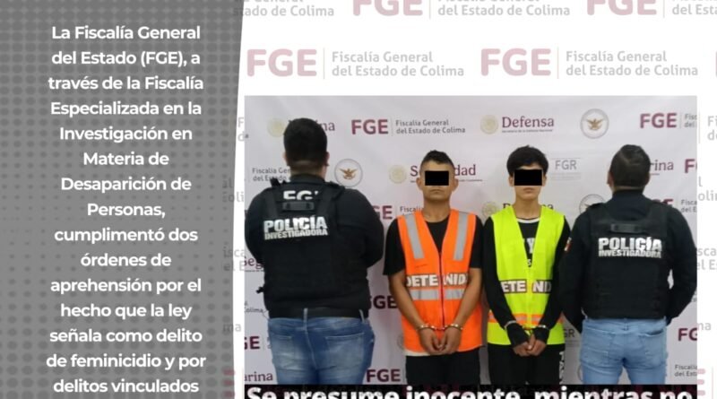 La Fiscalía General del Estado (FGE), a través de la Fiscalía Especializada en la Investigación en Materia de Desaparición de Personas, cumplimentó dos órdenes de aprehensión por el hecho que la ley señala como delito de feminicidio y por delitos vinculados con la desaparición de personas, en su hipótesis de inhumar restos de cadáver.