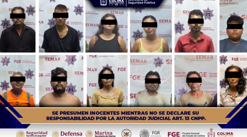 Como resultado de un operativo coordinado entre autoridades federales, estatales y municipales, la Secretaría de Seguridad Pública (SSP) del Gobierno del Estado de Colima logró la detención de doce personas en distintos puntos de los municipios de Manzanillo, Colima y Tecomán, por su presunta participación en delitos contra la salud.