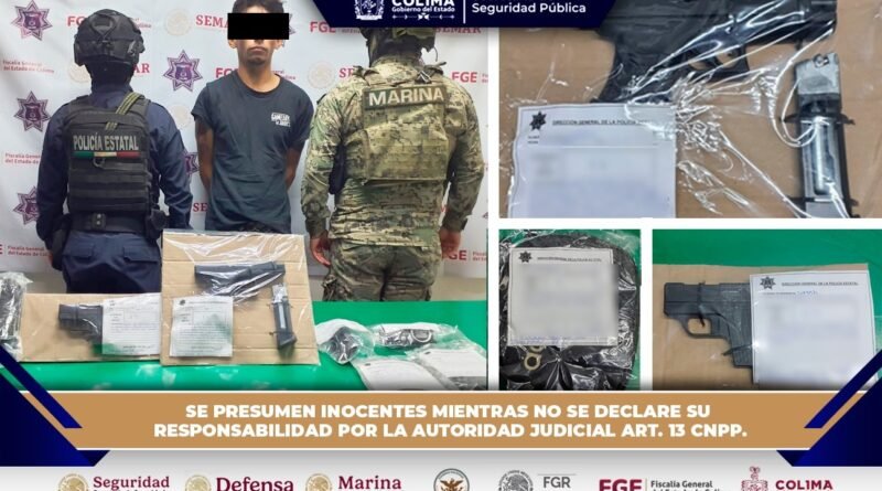 En el marco del Eje 4 de la Estrategia Nacional de Seguridad Pública, que impulsa la coordinación absoluta entre los tres niveles de gobierno, elementos de la Policía Estatal Preventiva, en coadyuvancia con fuerzas federales, estatales y municipales, lograron la detención de un hombre en el municipio de Manzanillo por su probable participación en delitos contra la salud y violación a la Ley Federal de Armas de Fuego y Explosivos.
