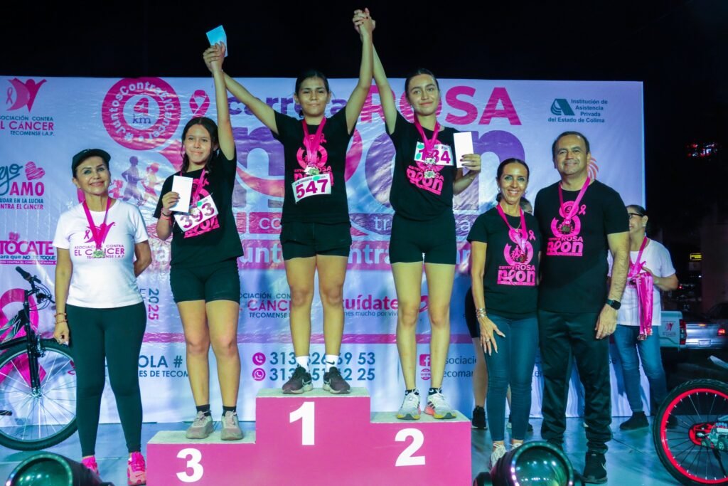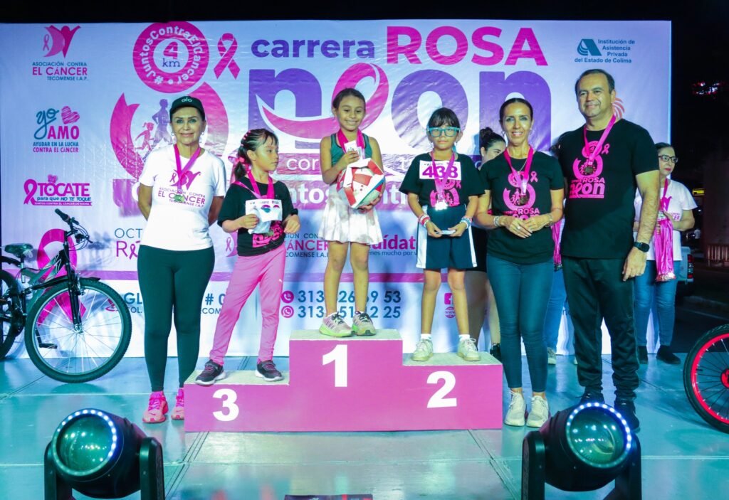 La tarde-noche de ayer viernes se llevó a cabo en el municipio de Tecomán, la 8va. Carrera Rosa Neón que organizó la Asociación contra el Cáncer Tecomenses, misma se realizó en los carriles centrales de la Avenida Insurgentes de este municipio.