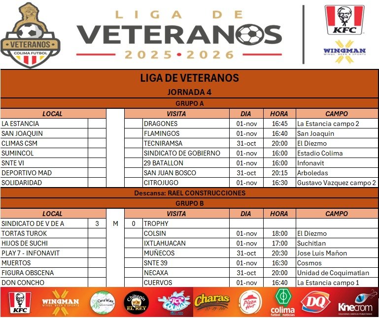Para la cuarta Fecha de la Temporada 2025-26, los líderes tendrán rivales cómodos, pues en el “A”, Citrojugo se medirá al colero de su sector, Solidaridad, el sábado, a las 4:30 de la tarde, en el campo 1 de la UGVM de Villa de Álvarez.
