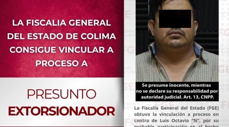 La Fiscalía General del Estado (FGE) obtuvo la vinculación a proceso en contra de Luis Octavio “N”, por su probable participación en el hecho constitutivo del delito de extorsión agravada, en hechos ocurridos en el municipio de Villa de Álvarez.