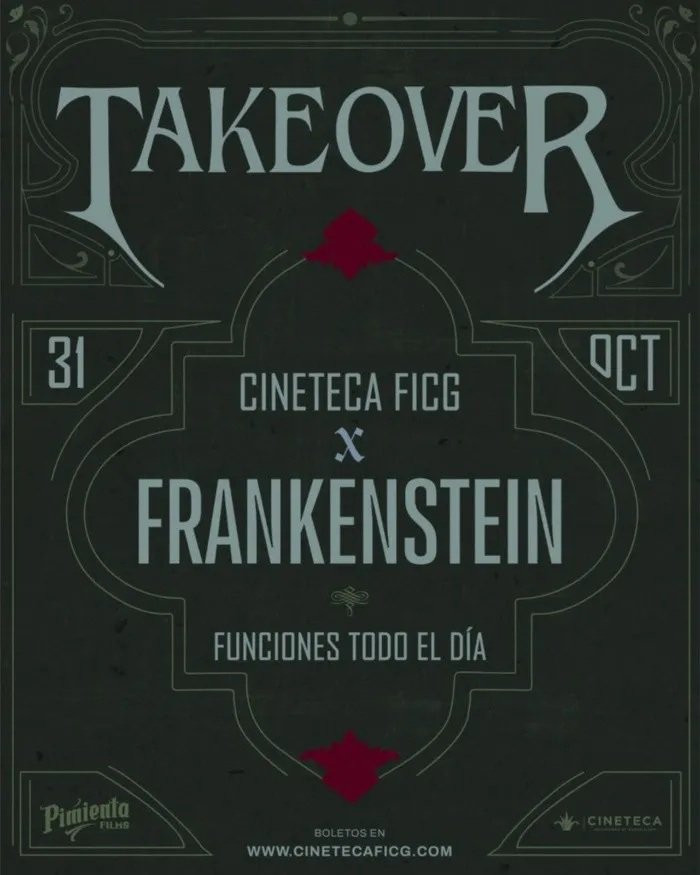 Este viernes 31 de octubre, la Cineteca FICG vivirá una jornada cinematográfica única con el takeover de Frankenstein, la más reciente película de Guillermo del Toro, que tomará por completo el recinto con funciones exclusivas en todas sus salas y una ambientación especial inspirada en el clásico de Mary Shelley.